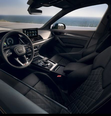 Préparez-vous à être impressionné par la grande qualité de l’intérieur de l’Audi Q5 Sportback TFSI e. Dès que vous montez à bord, son ambiance feutrée vous fascine. Avec la finition S line, vous appréciez des détails exclusifs tels que les seuils de porte éclairés avec lettrage S et les inserts décoratifs standard en aluminium mat brossé. Prenez place dans les sièges sport, en cuir Nappa fin, en option, avec gaufrage S et piqûres en diamant. L’intensité de ce nouveau modèle est inégalée.