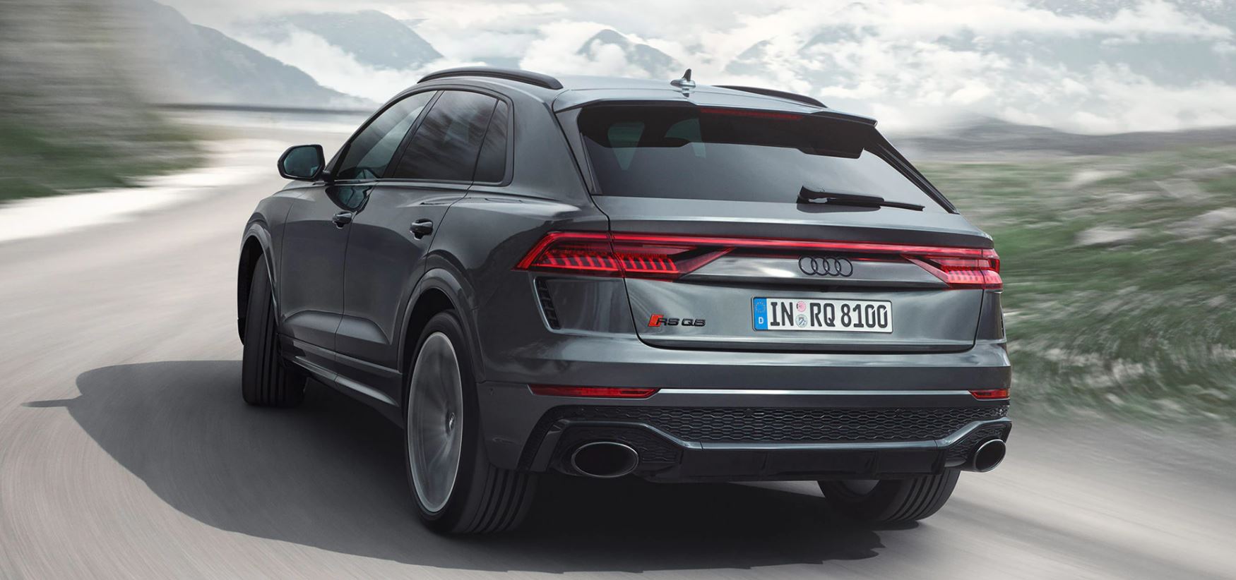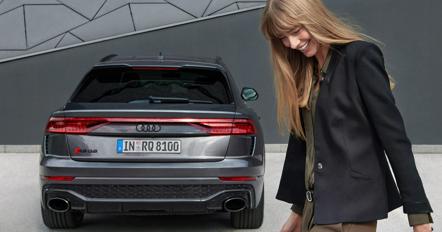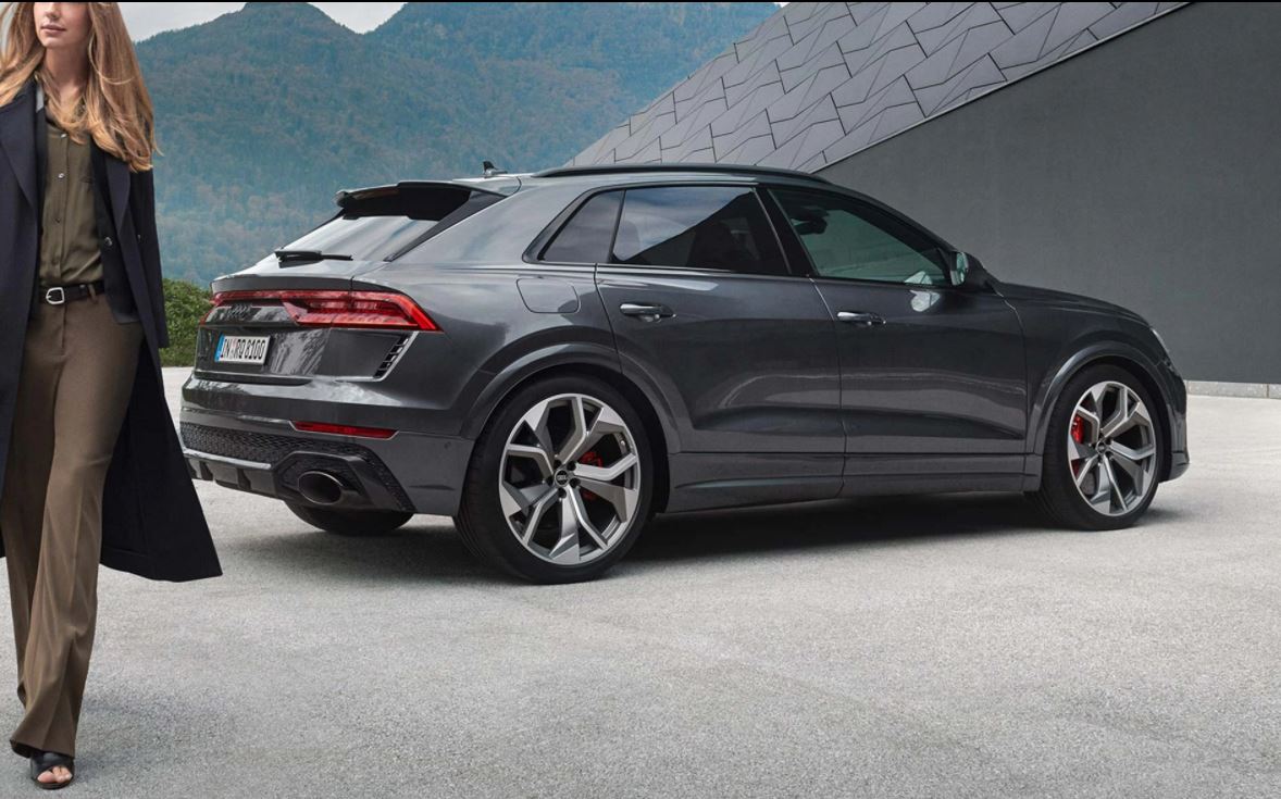 Dès le premier coup d’œil, l’Audi RS Q8 ne fait aucun doute sur ses gènes Audi Sport grâce à des éléments RS spécifiques : prises d’air élargies, calandre Singleframe et diffuseur arrière avec grille en nid d’abeille, becquet de toit… Audacieuse dans l’âme, l’Audi RS Q8 intègre un diffuseur arrière noir laqué rehaussé d’une lame horizontale en carbone et de sorties d’échappements ovales, typiques des modèles Audi Sport. Un becquet parachève une ligne de toit plongeante, qui, en outre, veille à la stabilité et à l’équilibre de l’imposant SUV Coupé Audi Sport. Trois lignes viennent sculpter les flancs pour exprimer le caractère de l’Audi RS Q8. Au-dessus des passages de roues marqués, deux lignes, les « quattro blisters », viennent rappeler l’héritage de l’Audi Sport quattro, qui a forgé la légende Audi en compétition. Pour se distinguer de son homonyme classique, les bas de caisse et les passages de roues arborent la couleur de la carrosserie.
