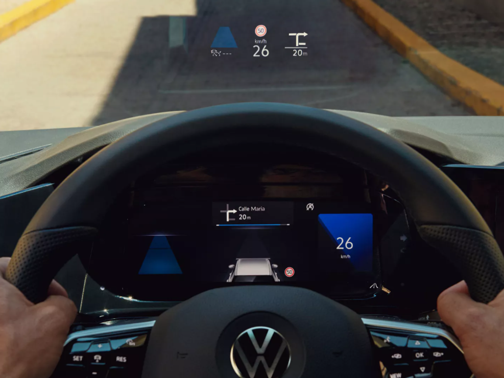 Pouvoir consulter toutes les informations les plus importantes tout en gardant un œil sur la route : c’est le principal avantage de l’affichage tête haute de votre Golf. Une partie du pare-brise devient une zone de projection qui peut afficher votre vitesse, les messages de vos systèmes d’aide à la conduite ou les instructions de navigation. La projection elle-même est toujours clairement lisible, même lorsque la lumière brille directement sur le pare-brise. Et vous pouvez désactiver l’affichage à tout moment si vous n’en avez plus besoin.