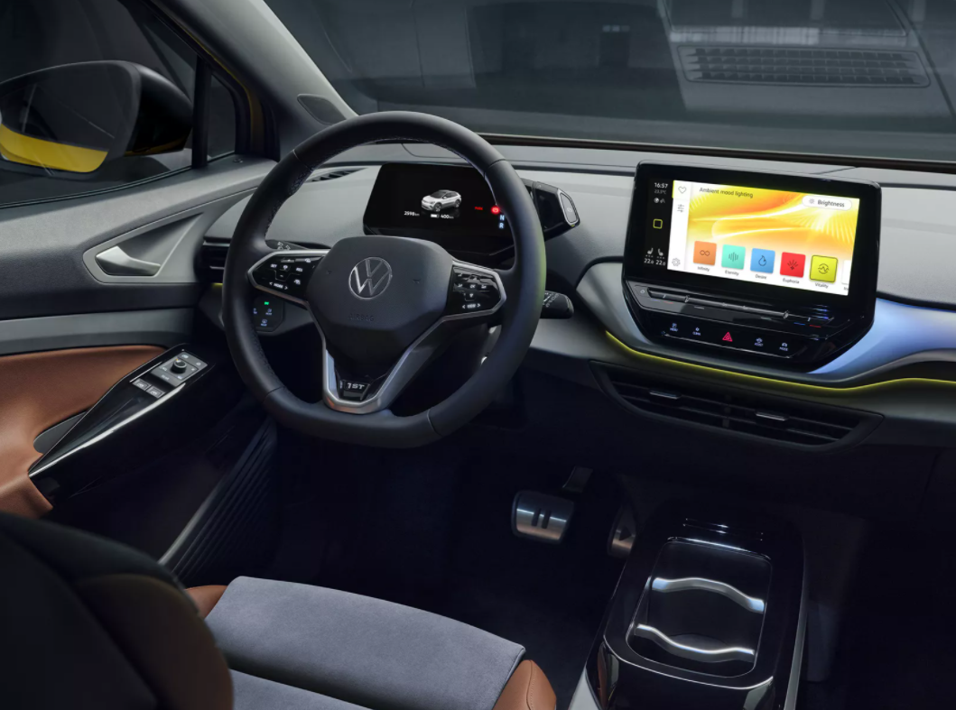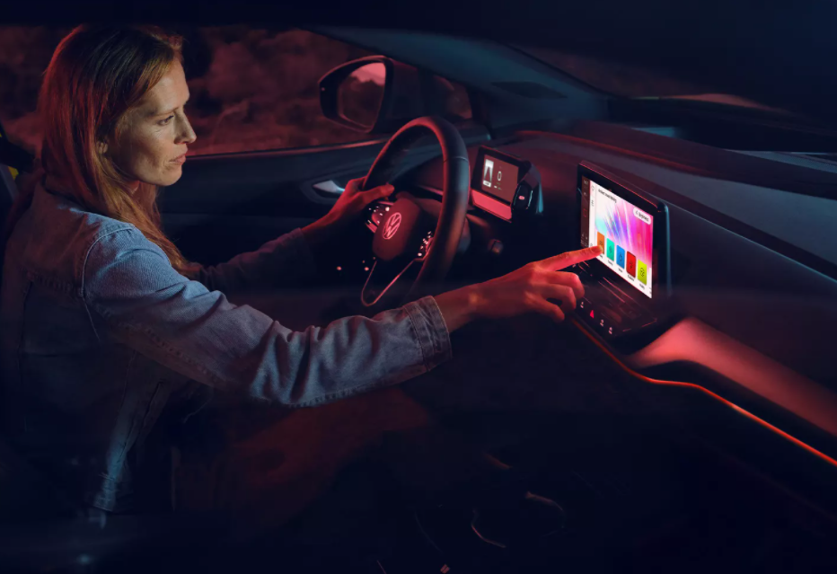 N’hésitez-pas à façonner l’habitacle du nouveau ID.4 à votre image. Commencez par choisir votre couleur parmi les 30 nuances optionnelles et peaufinez l’éclairage. Du tableau de bord aux portières en passant par le support de téléphone, êtes-vous lumière froide ou plutôt chaude ? Il ne tient qu’à vous.