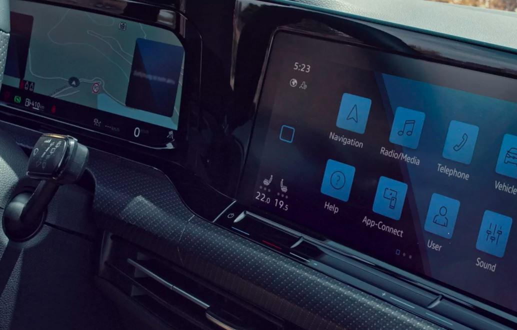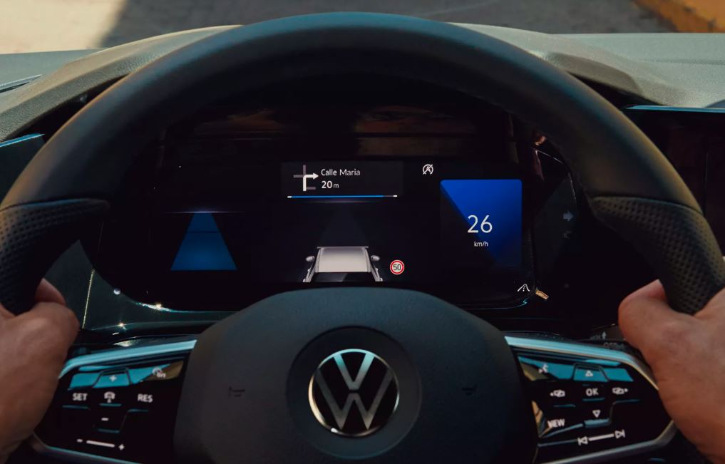 Votre Golf vous reconnaît et active automatiquement votre profil de conduite*: Du réglage du siège à l’éclairage, en passant par la température, la radio et la navigation, ainsi que l’assistance au conducteur. Vous pouvez facilement effectuer vos réglages préférés dans l’Innovision Cockpit avec le combiné d’instruments du poste de conduite ‘Digital Cockpit’ et le système de navigation ‘Discover Pro’. En plus du contenu classique comme le compte-tours, le compteur de vitesse et le compteur kilométrique, vous pouvez également régler l’affichage du poste de conduite ‘Digital Cockpit’ avec d’autres données utiles, comme par exemple la carte de navigation qui peut être affichée sur l’ensemble de la zone.
