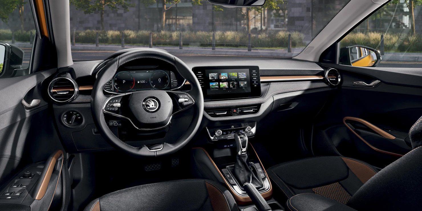 À l’intérieur, un habitacle spacieux et bien aménagé, des matériaux de qualité et des solutions ingénieuses Simply Clever. Votre attention sera immédiatement attirée par l’élégant volant à deux branches, le nouveau tableau de bord et le système multimédia doté d’un écran de 9,2 pouces maximum. Parmi les multiples détails remarquables, citons la forme des poignées de porte intérieures et la garniture du tableau de bord qui s’étend sur toute la largeur de l’habitacle et jusqu’aux aérations rondes.