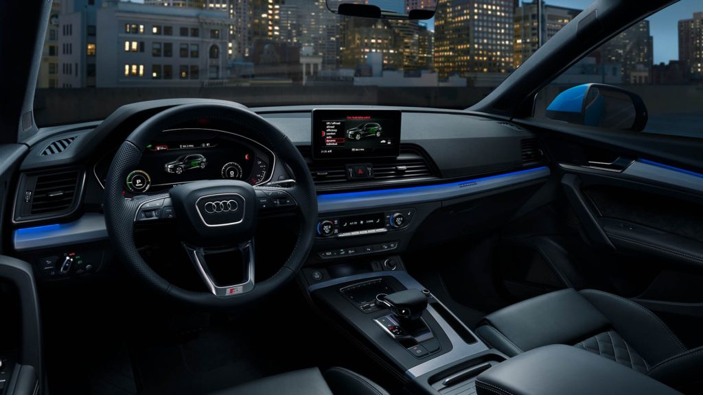 En alliant une motorisation thermique 4 cylindres et une motorisation électrique, l’Audi Q5 55 TFSI e quattro offre les performances d’un SUV sportif tout en sobriété. Son secret ? Une motorisation électrique d’une puissance de 143 ch, offrant une autonomie d’au moins 40 km en ville. Idéal pour parcourir vos trajets quotidiens en conduite tout-électrique et sans la moindre émission. Chez vous ou lors de vos trajets, de nombreuses solutions sont proposées afin de vous permettre de recharger quand vous en avez besoin.