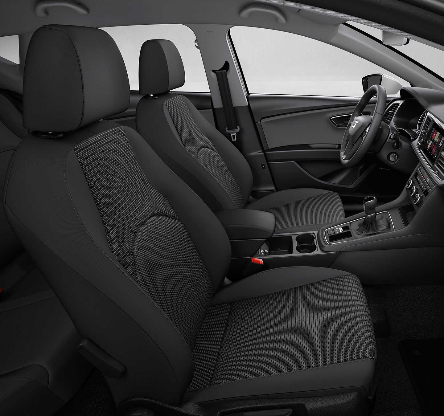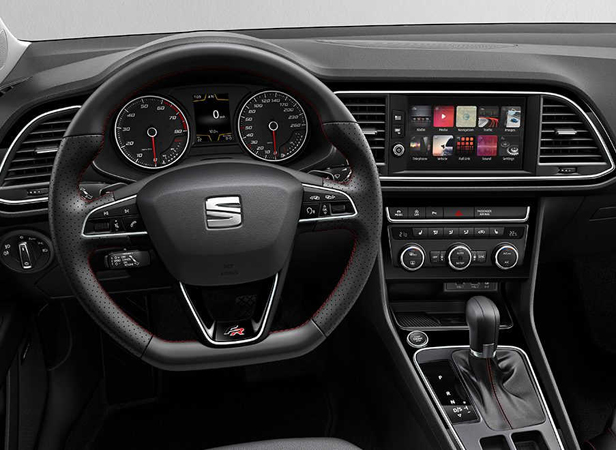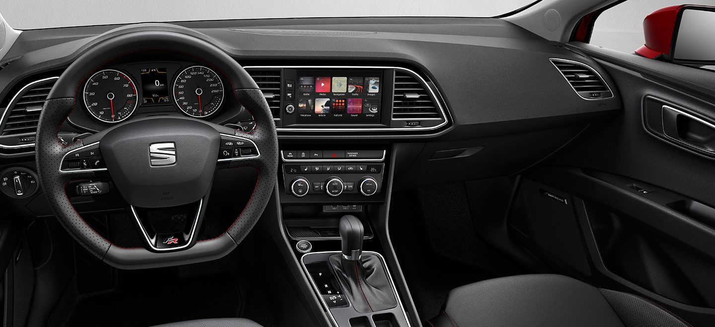 Un habitacle au volume généreux se remarque immédiatement dès l’ouverture de la porte de cette Nouvelle Leon 5 portes. Les yeux se rivent ensuite sur l’agencement parfait de la console centrale avec éclairage LED ainsi que le tableau de bord orienté conducteur. On ne peut que déduire la facilité d’accès des fonctionnalités exceptionnelles de cette Seat à travers cet emplacement soigneusement étudié. La touche de raffinement se remarque via la sellerie de qualité. A cette option, le constructeur laisse à chacun le libre choix de peauffiner à sa façon cet intérieur en proposant un large choix de selleries. Chaque finition a déjà d’ailleurs sa particularité en matière chic comme XCELLENCE qui séduit par ses détails chromés et autres touches finales. Pour FR, c’est tout simplement la combinaison du volant en cuir et la sellerie de haute qualité qui fascine.