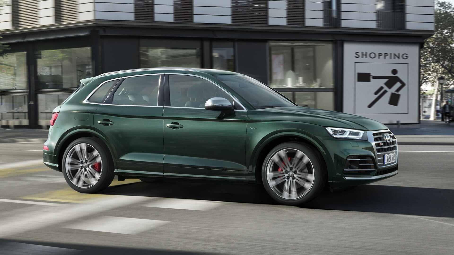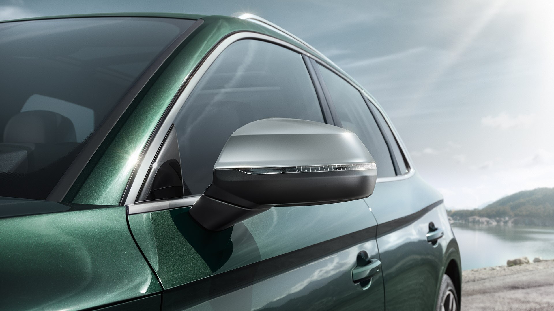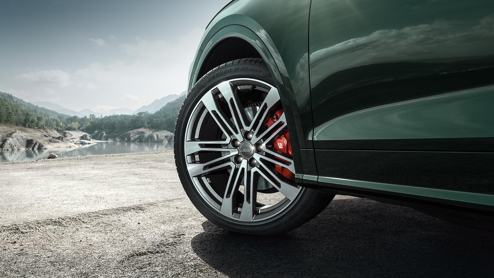 Vue de l’extérieur, l’Audi SQ5 TDI ne laisse aucun doute sur son caractère sportif : imposantes prises d’air, calandre Singleframe avec lamelles horizontales chromées, diffuseur avec grille alvéolée, casquette de hayon, jantes 20 pouces en aluminium… En plus d’un design typiquement « S », des petits détails viennent ajouter plus de caractère au véhicule, à l’instar des coques de rétroviseurs en aluminium. Pour encore plus de distinction, si vous le souhaitez les étriers de freins peuvent arborer une couleur3 rouge disponible en option.