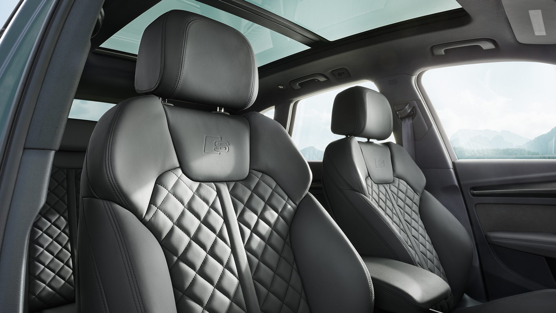 Gage de son appartenance à la gamme « S », l’Audi SQ5 TDI intègre des seuils de portes éclairés et estampillés du logo S, ainsi que des badges « S » sur les baguettes de portières, les sièges et le volant. À bord, chaque détail fait la part belle à l’élégance avec, par exemple, des surpiqûres contrastées sur le volant et les sièges Sport S en cuir. Hauteur, position longitudinale, inclinaison et flancs des dossiers… une fois installé dans votre siège, ajustez-le pour trouver la position idéale. Pour plus de raffinement et de confort, optez pour des sièges en cuir Nappa intégrant une fonction massage pneumatique. En option, un large choix de matériaux vous est proposé pour personnaliser l’habitacle et y ajouter des touches subtiles de bois ou de carbone. Pour parachever le tout, le toit en verre panoramique vous fait profiter de la lumière naturelle. Le SUV sportif ouvre le champ des possibles pour satisfaire toutes vos envies de voyage grâce à un volume de coffre qui atteint une capacité de 550 litres et 1 550 litres sièges arrière rabattus.