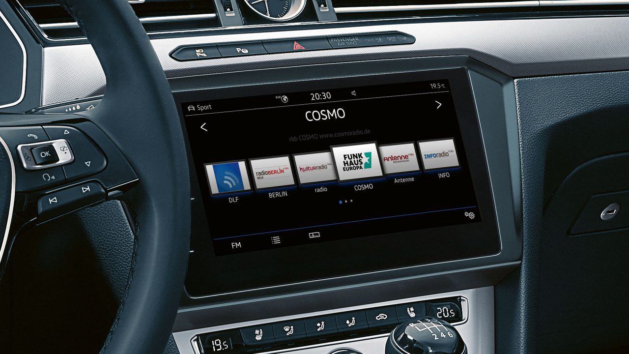 Le regard se porte immédiatement sur le tableau de bord numérique au design innovant « Active Info Display ». Le confort reste omniprésent à l’intérieur de ce véhicule et se ressent à travers différents éléments dont le siège Ergo-Confort autorisant jusqu’à 14 configurations. Cette berline surprend également avec son grand volume de chargement. Elle dispose d’un spacieux coffre de 586 litres. Grâce à la fonction « Easy Open », celui-ci s’ouvre simplement grâce à un simple mouvement du pied sous l’arrière de la Passat. La fonction « Keyless » permet de démarrer la voiture sans clé. Bien équipée en matière d’infodivertissement, la Passat Berline est aussi une voiture connectée avec ses options de communication et de navigation.